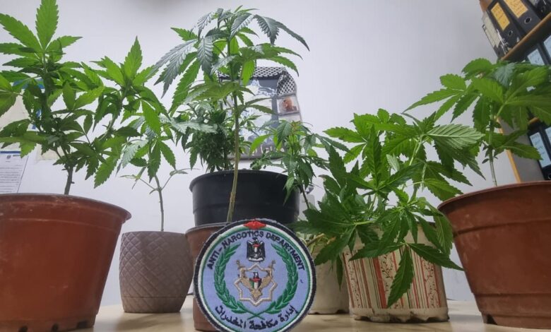 وذكرت إدارة العلاقات العامة والإعلام بالشرطة بأنه وبناء على معلومات توافرت لشرطة مكافحة المخدرات تتعلق بوجود كميات من المواد المخدرة داخل منزلين في الخليل، على الفور تحركت قوة من المكافحة للمنازل وبتفتيشها أصولاً تم ضبط 10 أشتال من نبات الماريجوانا المخدرة وكمية من مادة الحشيش المخدر بلغت من الوزن ما يقارب نصف كيلو غرام بالإضافة لمجموعة من أدوات التعاطي، والقبض على 3 أشخاص من المشتبه فيهم بحيازتها.