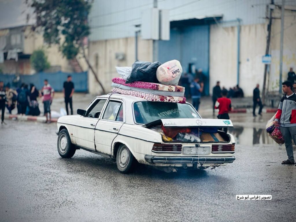 وبدأ الآلاف من المواطنين بالنزوح نحو سط رفح حيث شوهدت سيارات تحمل أغطية ومعدات تغادر شرق المدينة.