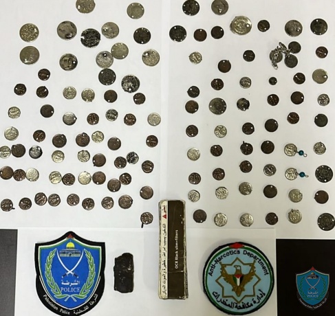 وفي نفس السياق وصلت معلومات لمكافحة المخدرات بحيازة شخص من ذوي السوابق بتجارة المخدرات داخل منزله على مواد مخدرة وبعد استصدار المذكرات القانونية اللازمة من النيابة العامة وبتفتيش المنزل عثر على مواد يشتبه أنها مخدرة من نوع الحشيش وأدوات تعاطي وضبط 120 قطعة معدنية يشتبه أنها أثرية .