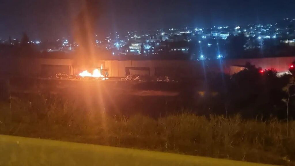 وقام مستوطنون بإحراق شاحنتين تحملان مساعدات إنسانية من الأردن إلى غزة.