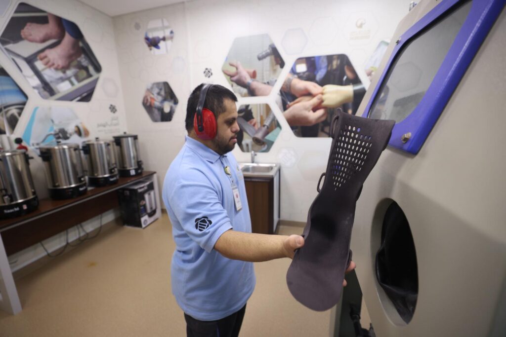 ويمكّن مصنع الأطراف الاصطناعية بمؤسسة زايد العليا في أبوظبي في الإمارات، أصحاب الهمم، من المساهمة الفاعلة في الجهود الإنسانية المساندة لفلسطين والعالم، من خلال تدريبهم وتأهيلهم ليكونوا مشاركين مؤثرين في جهود تصميم وتصنيع واختبار وتوصيل الأطراف الاصطناعية لمن يحتاجها.