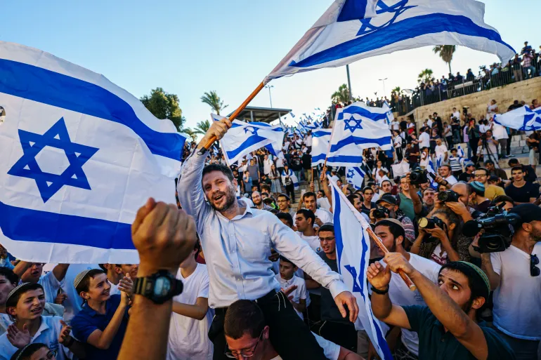 ويرفع المشاركون في المسيرة أعلاما إسرائيلية، ويرددون هتافات معادية للفلسطينيين والعرب، منها “الموت للعرب”.