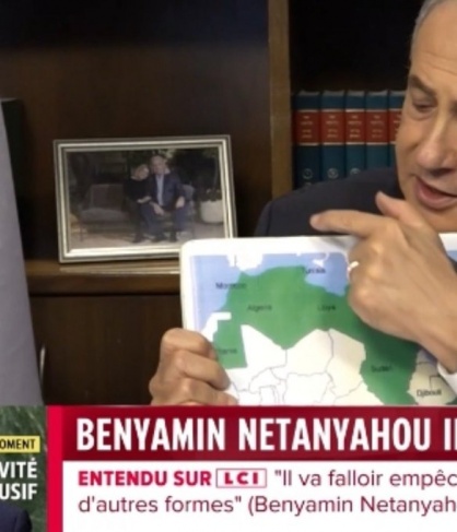 وجاء ظهور رئيس الوزراء الإسرائيلي في مقابلة بثت مساء الخميس على شاشة قناتي “TF1″ و”LCI” الفرنسيتين الرسميتين، وهو يحمل خريطة للعالم العربي وإيران، تظهر المغرب من دون الصحراء.
