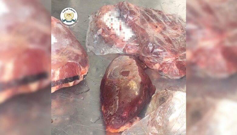 وأضافت الضابطة بأنه اللحوم بالتعاون مع جهاز الاختصاص في وزارة الصحة، حيث تظهر على اللحوم علامات تدل على تلفها وفسادها.