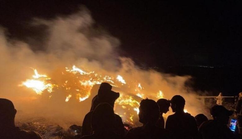 أضرم مستوطنون النار، مساء اليوم الأحد، في أراضي قرية دوما، جنوب نابلس.