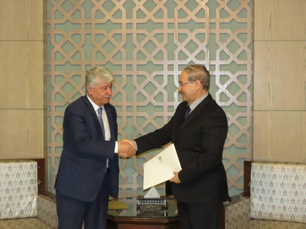سلم عضو اللجنة التنفيذية لمنظمة التحرير أحمد مجدلاني، اليوم الخميس، وزير الخارجية والمغتربين في الجمهورية العربية السورية فيصل مقداد، رسالة من الرئيس محمود عباس إلى الرئيس السوري بشار الأسد.