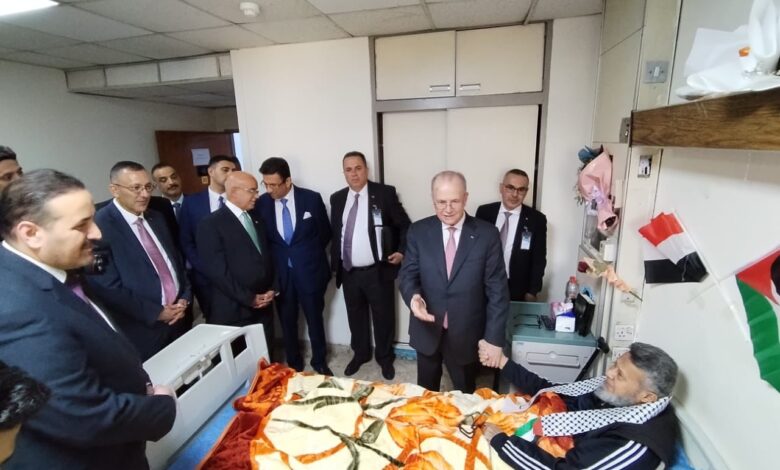 رئيس الوزراء يعود جرحى قطاع غزة في مستشفى مدينة الطب في بغداد