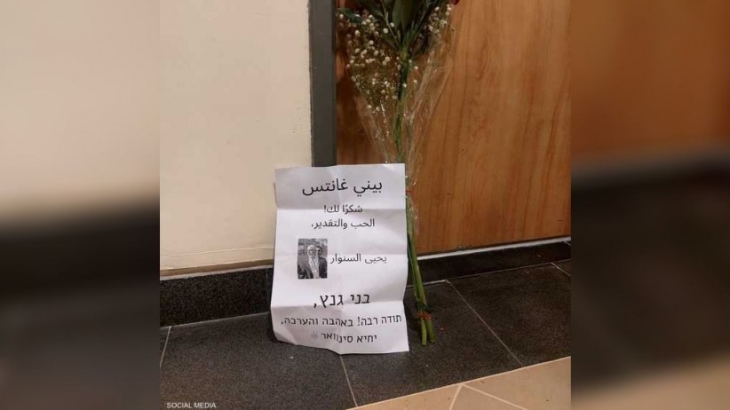 ووضع النشطاء باقة زهور على مدخل مكتب الوزير في الكنيست، وأرفقوا مذكرة بها صورة زعيم حماس يحيى السنوار، كما لو كان هو من أرسلها.