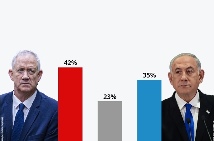 وفي تفاصيل النتائج، أظهر الاستطلاع أنّ 42% من الإسرائيليين يُفضّلون زعيم “حزب الوحدة الوطنية”، بيني غانتس لرئاسة الوزراء لو جرت الانتخابات في الوقت الراهن، مقابل 35% فقط يُفضّلون نتنياهو.