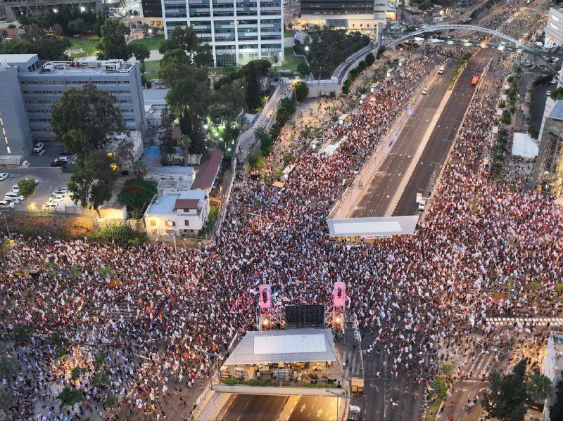وذكرت يديعوت أحرونوت أن المظاهرات الاحتجاجية في تل أبيب اليوم هي الأضخم في إسرائيل منذ السابع من أكتوبر.