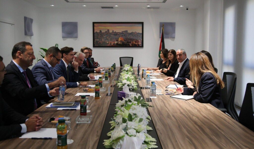 بحث أمين سر اللجنة التنفيذية لمنظمة التحرير حسين الشيخ، مع المدير العام لمفاوضات الجوار والتوسع في المفوضية الأوروبية غيرت يان كوبمان، والمديرة العامة بالجوار الجنوبي وتركيا لمفاوضات الجوار والتوسع بالاتحاد الأوروبي هنريك تراوتمان، الجهود الإقليمية والدولية لوقف العدوان المدمر والكارثة الإنسانية المتفاقمة في قطاع غزة.