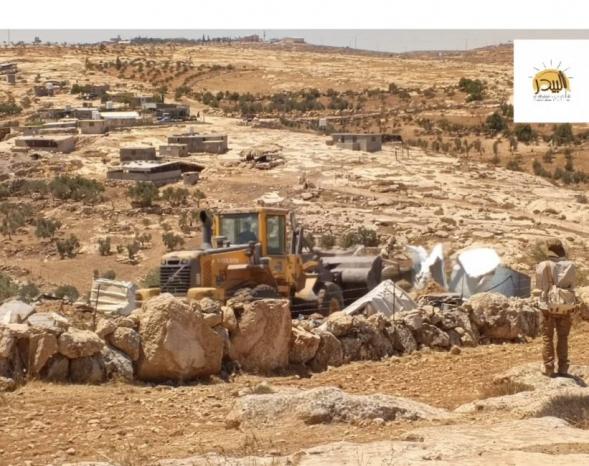 منظمة البيدر: سلطات الاحتلال تهدم منزلين وبركسين ووحدات صحية في شعب البطم بمسافر يطا