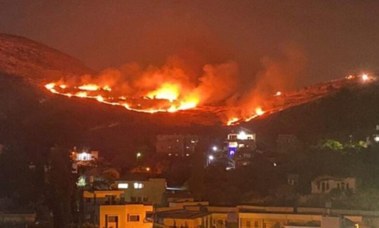 مستوطنون يحرقون مساحات واسعة من الأراضي في الفندقومية جنوب جنين