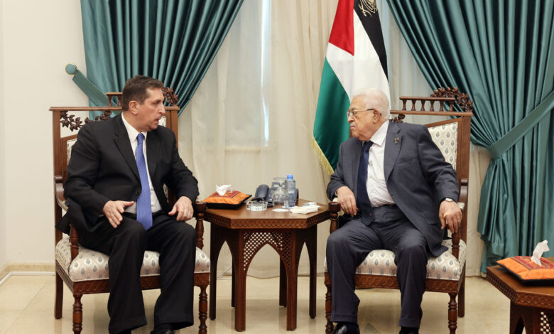 استقبل رئيس دولة فلسطين محمود عباس، اليوم الاثنين، بمقر الرئاسة في مدينة رام الله، مبعوث وزير الخارجية الروسي الخاص للشرق الأوسط فلاديمير سافرونكوف، بحضور السفير الروسي لدى فلسطين غوتشه بواتشيدزه.