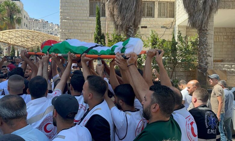 نابلس: تشييع جثمان الشهيد المسعف تامر صقر