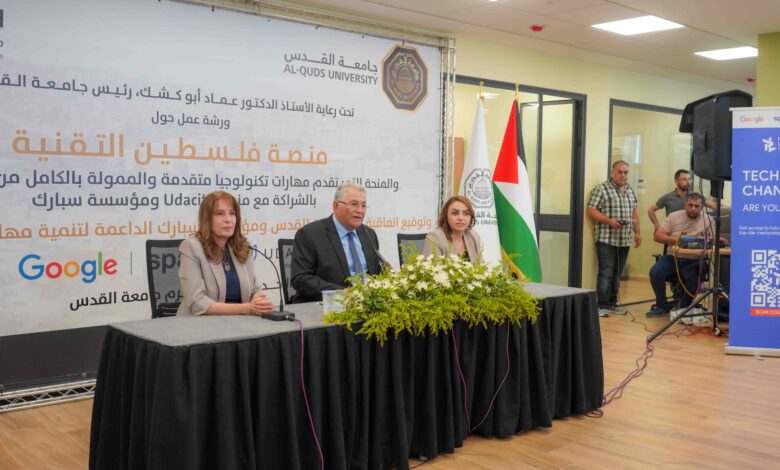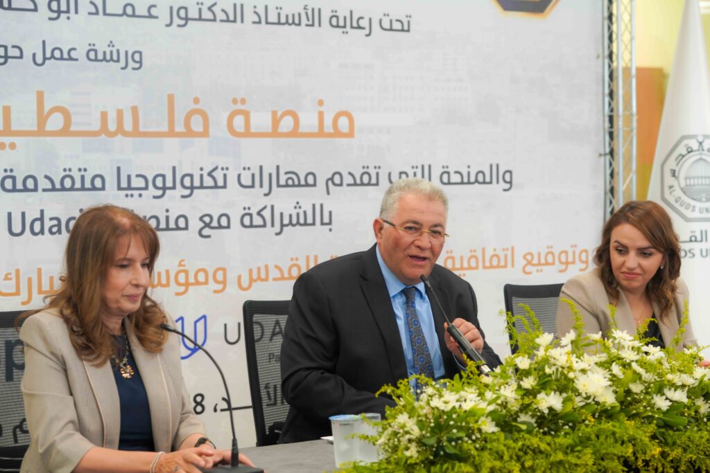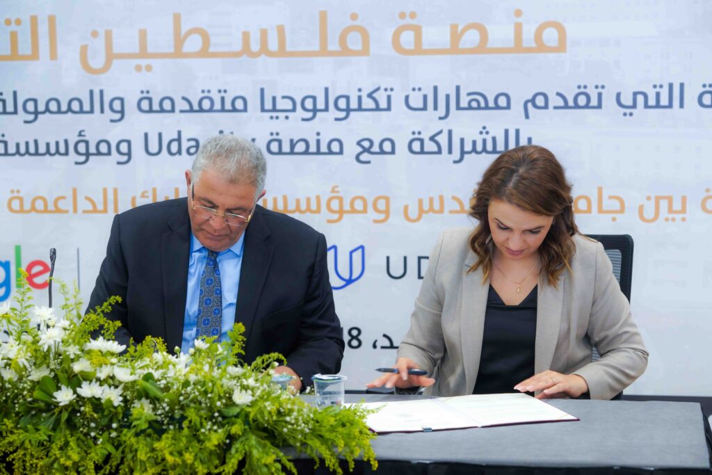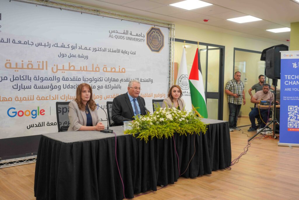 نظم مركز القدس للتكنولوجيا وريادة الأعمال بالتعاون مع كلية الدراسات الثنائية ودائرة الحاسب في جامعة القدس ورشة عمل حول “منصة فلسطين التقنية”، والمنحة التي تقدم مهارات تكنولوجيا متقدمة والممولة من شركة GOOGLE، وبالشراكة مع منصة Udacity ومؤسسة سبارك، تلاها توقيع اتفاقية بين الجامعة وسبارك لتنمية مهارات الشباب والتوظيف، بحضور رئيس الجامعة أ.د. عماد أبو كشك، ومديرة البرنامج الإقليمي لمؤسسة “سبارك” الأستاذة دينا المساعيد، ومدير عام شركة “أوغاريت” الأستاذة أمل المصري، وعدد من أساتذة الجامعة والطلبة.