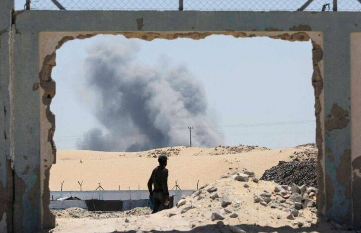 ونفذت طائرات الاحتلال سلسلة غارات على مدينة دير البلح لاجبار السكان على النزوح في عدة بلوكات غرب شارع صلاح الدين.
