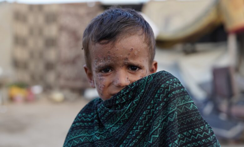 تقول أم فايز للأناضول: “نزحنا من شمال قطاع غزة إلى وسطه، ويعاني طفلي مرضا جلديا يُعتقد أنه جدري أصاب جسده بالكامل، حيث يحكّ جسده باستمرار دون توقف”.