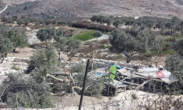 مستوطنون يقتلعون أشجار زيتون ويهدمون غرفة زراعية في جبع جنوب جنين