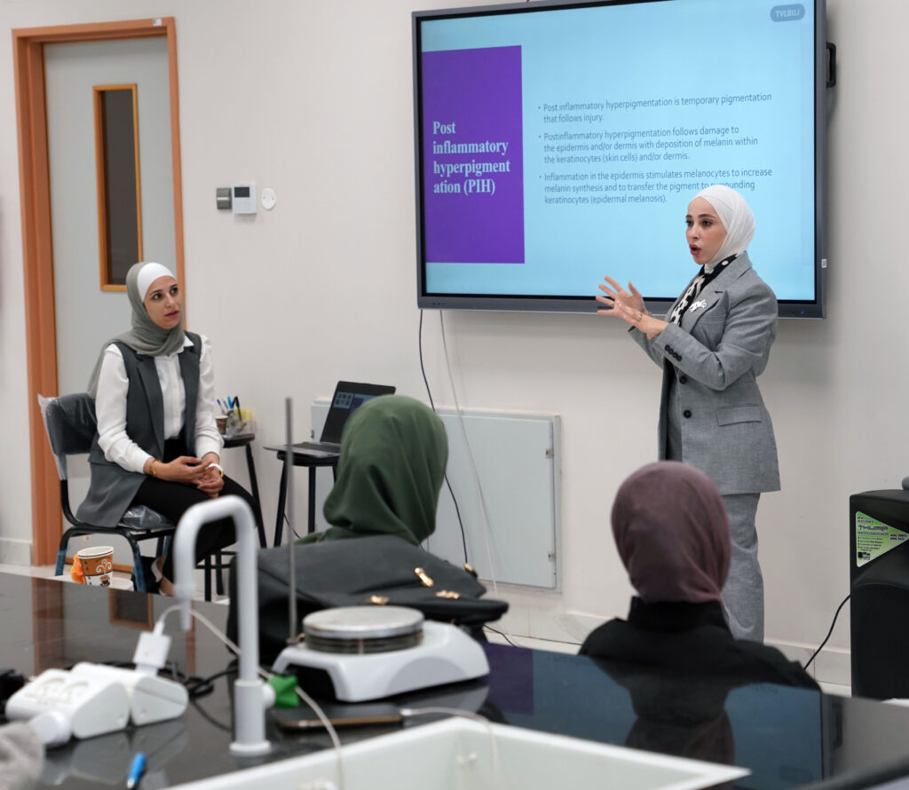 من جهتها، أكدت د. سهاد عنيبوسي، القائمة بأعمال قسم التجميل والعناية بالبشرة، على تميز القسم بتوفير بيئة تعليمية مميزة وآمنة، باستخدام أحدث أدوات التعليم والمرافق المريحة، بالإضافة إلى وجود كادر أكاديمي متمرس. وشددت على أن الدعم الإداري للجامعة يسهم بشكل كبير في تطوير الطلبة والنهوض بمستواهم الأكاديمي والمهني. وأضافت عنيبوسي: “نسعى لعقد شراكات واتفاقيات مع شركات متخصصة في مجال العناية بالبشرة خلال الفترة القادمة، بهدف تدريب الطلبة وتنظيم ورش عمل متنوعة لتعزيز التوازن بين المعرفة النظرية والمهارات العملية، ما ينعكس بشكل إيجابي على مستقبلهم المهني”.