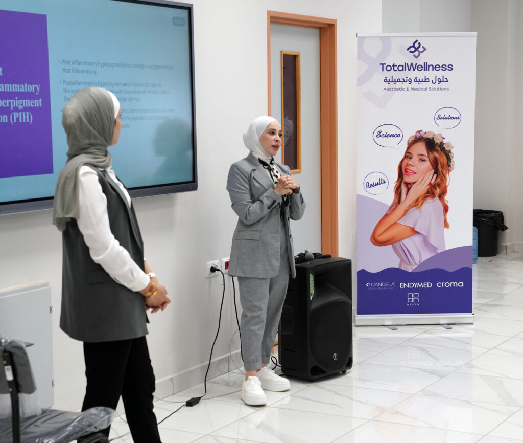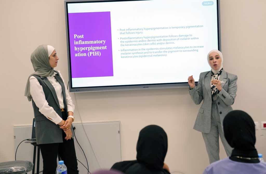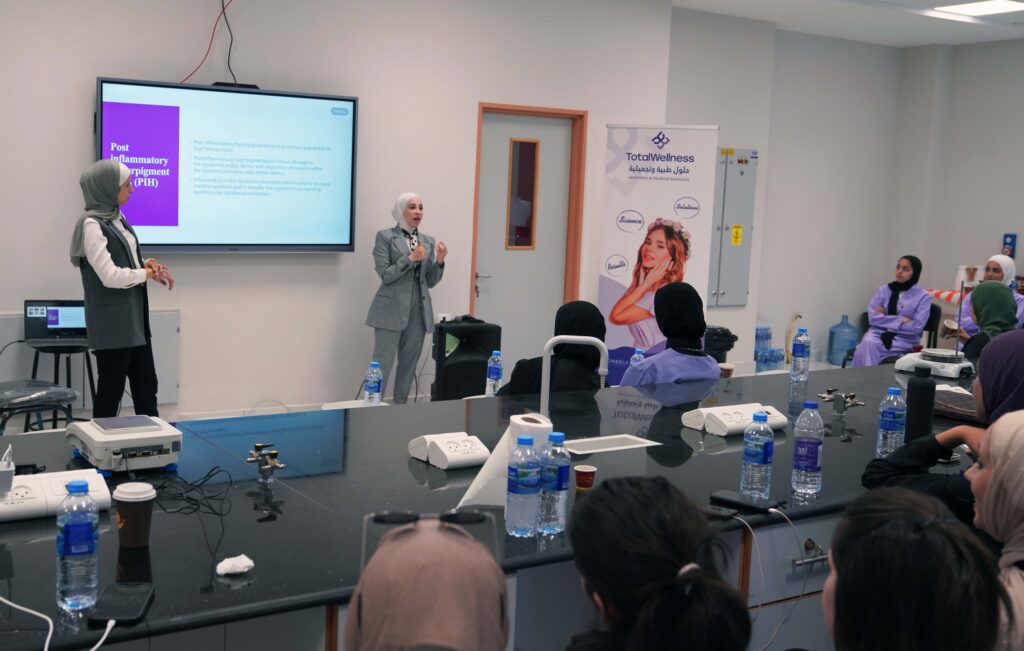 من جانبها، أشادت ممثلة شركة الكرمة المدربة أ. راية ربايعة، بالدور الذي تلعبه الجامعة، وقسم التجميل والعناية بالبشرة بشكل خاص، في تطوير مهارات الطلبة. وأوضحت أن التدريب العملي يعزز من مهاراتهم، ويمنحهم التميز في مجالهم، مؤكدة أن الجامعة تواكب التطورات وتحرص على تقديم كل ما يخدم طلبتها.