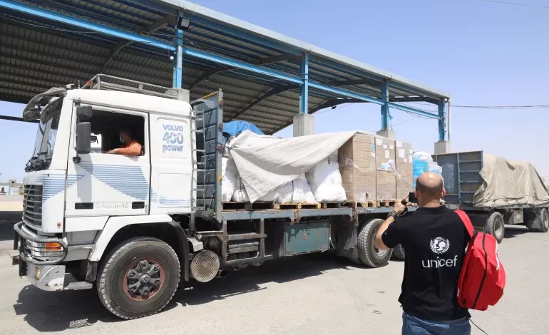 اليونيسيف: ارتفاع عدد النازحين بقطاع غزة إلى 1.9 مليون وانخفاض عدد شاحنات المساعدات