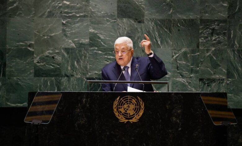 وقال الرئيس عباس في كلمة دولة فلسطين امام الدورة الـ79 للجمعية العامة في نيويورك اليوم الخميس، سنقدم طلبا إلى رئيس الجمعية العامة للأمم المتحدة بهذا الشأن.