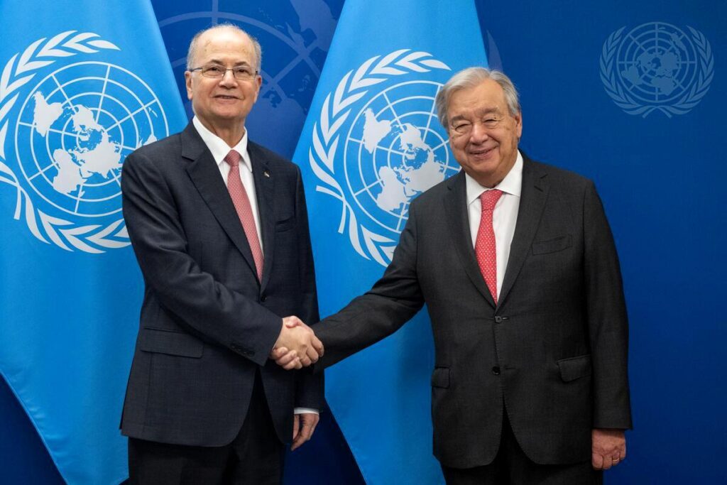 وبحث مصطفى مع الأمين العام الخطوات العملية لتنفيذ وتطبيق قرارات مجلس الأمن لوقف العدوان على شعبنا، وقرار الجمعية العامة للأمم المتحدة المستند على الرأي الاستشاري الصادر عن محكمة العدل الدولية، من أجل إنهاء الاحتلال، وتجسيد إقامة الدولة الفلسطينية.