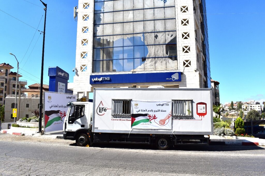 بالتعاون مع بنك الدم المركزي التابع لوزارة الصحة الفلسطينية، أطلق موظفو البنك الوطني مبادرة للتبرع بالدم لصالح أهالي غزة تحت شعار “دمي فلسطيني”، حيث تم تخصيص ثلاثة أيام على التوالي لتواجد العيادة المتنقلة المختصة بسحب الدم في مقرات إدارة البنك الوطني العامة بمختلف بناياتها.