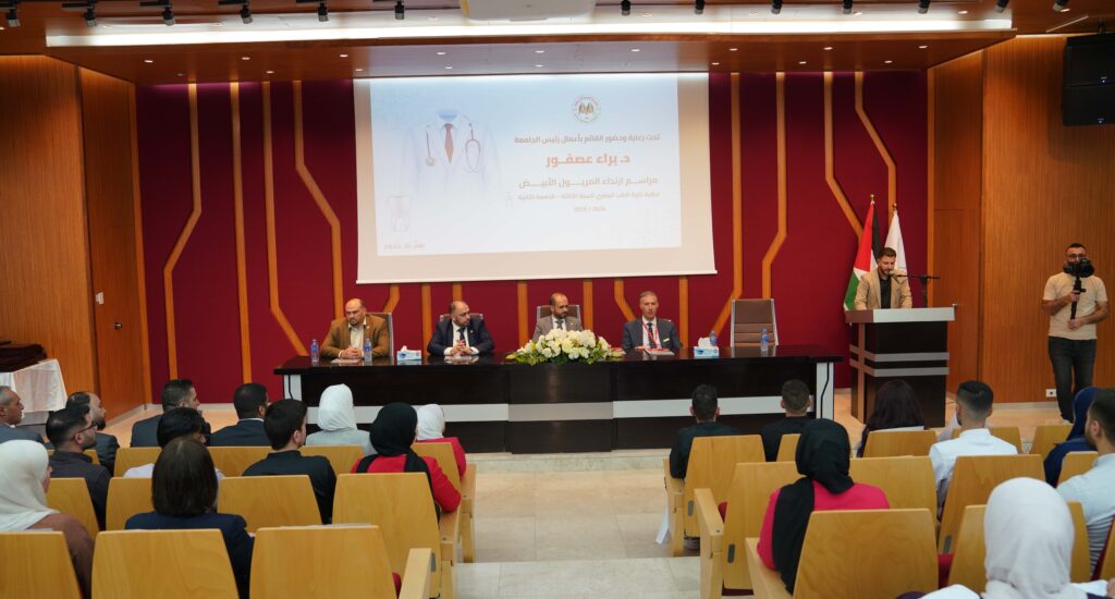ووجه حديثه إلى الطلبة قائلا لهم، “أنتم اليوم ترتدون المريول الأبيض، رمز الإنسانية والسلام، وأنتم الآن على أعتاب مرحلة جديدة، تتطلب منكم الالتزام والمسؤولية، وأنتم مؤتمنون على صحة المرضى وأسرارهم، ثقوا أن ما بذلتموه من جهد وتعب سيثمر في المستقبل، وستكونون مثالا يحتذى به أطباء متميزين من خريجي الجامعة العربية الأمريكية”.