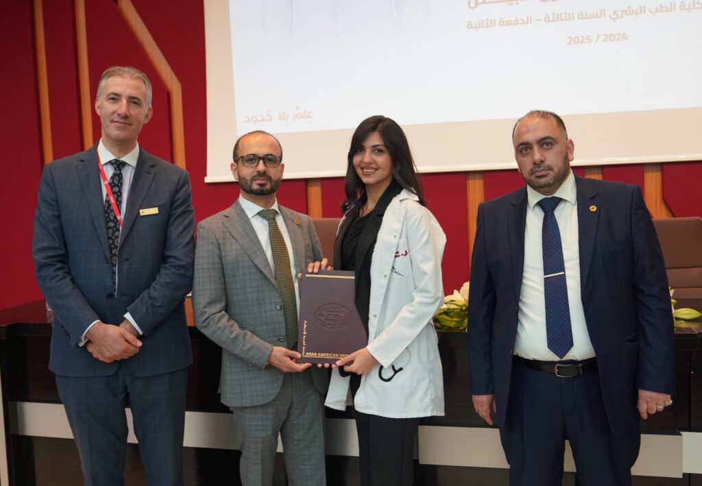 ووجه حديثه إلى الطلبة قائلا لهم، “أنتم اليوم ترتدون المريول الأبيض، رمز الإنسانية والسلام، وأنتم الآن على أعتاب مرحلة جديدة، تتطلب منكم الالتزام والمسؤولية، وأنتم مؤتمنون على صحة المرضى وأسرارهم، ثقوا أن ما بذلتموه من جهد وتعب سيثمر في المستقبل، وستكونون مثالا يحتذى به أطباء متميزين من خريجي الجامعة العربية الأمريكية”.