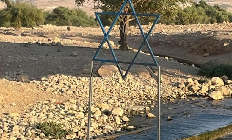 مستوطنـون يُعلّقون شعار نجمة داود عند نبع العوجا