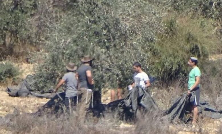 سرق مستوطنون ثمار زيتون بعد مهاجمة المزارعين بمسافر يطا جنوب الخليل.