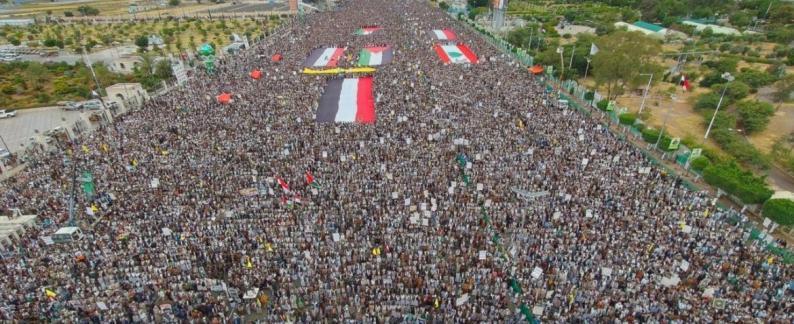 خرجت مسيرات مليونية في ميدان السبعين في العاصمة صنعاء، الجمعة، وفي محافظات صعدة ورَيْمَة ومأرب، وعدد من مديريات محافظات الحُدَيْدَة وعَمْران وإب وتعز وحَجَّة وذَمَار والمَحْوِيت والجوف والضالع ولحج في اليمن.