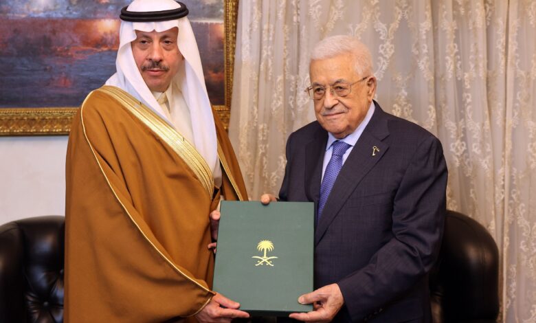 جاء ذلك خلال استقبال الرئيس، سفير المملكة العربية السعودية غير المقيم لدى دولة فلسطين، القنصل العام في القدس نايف بن بندر السديري، مساء اليوم السبت، في مقر إقامته بالعاصمة الأردنية عمان، بحضور مستشار الرئيس للشؤون الدبلوماسية مجدي الخالدي، وسفير دولة فلسطين لدى الأردن عطالله خيري.