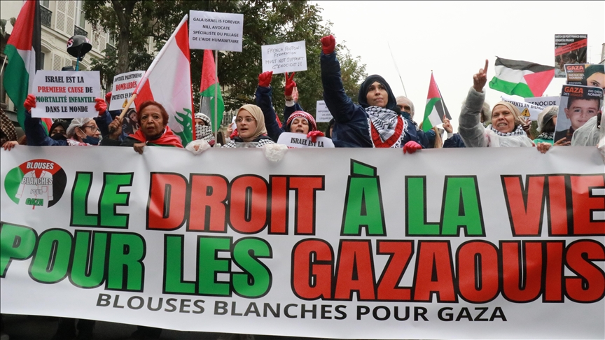 واحتشد المتظاهرون في ميدان الجمهورية ثم ساروا إلى ميدان باستيل في باريس مرددين هتافات تندد بالمجازر الإسرائيلية. رفعوا أعلام فلسطين ولافتات عليها شعارات من قبيل “أوقفوا الإبادة الجماعية”، و”توقفوا عن تسليح إسرائيل”، مطالبين بالحرية لفلسطين.