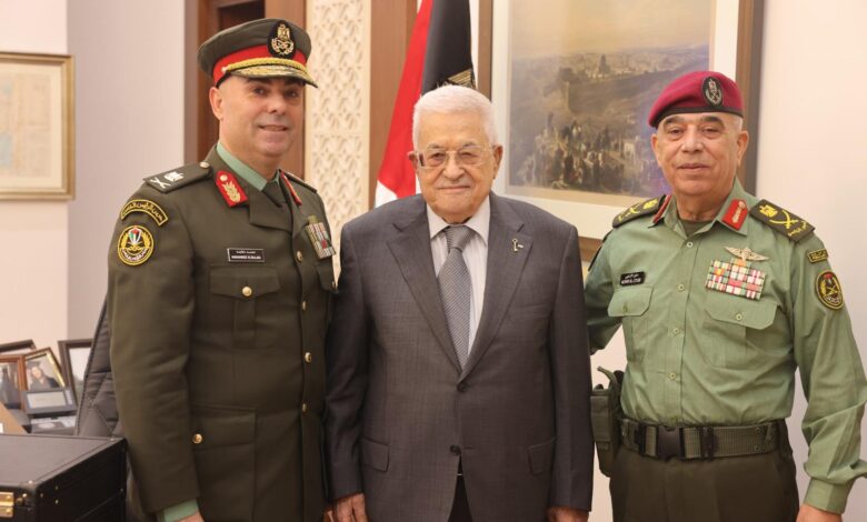 استقبل الرئيس محمود عباس، قائد الحرس الرئاسي اللواء محمد الدعاجنة، والمستشار العسكري اللواء منير الزعبي، بحضور كبار ضباط الحرس الرئاسي.