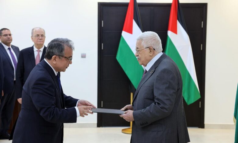وحضر مراسم تقبل أوراق الاعتماد التي جرت في مقر الرئاسة بمدينة رام الله، رئيس الوزراء، وزير الخارجية والمغتربين محمد مصطفى، ومستشار الرئيس للشؤون الدبلوماسية مجدي الخالدي، وقائد الحرس الرئاسي اللواء محمد الدعاجنة.