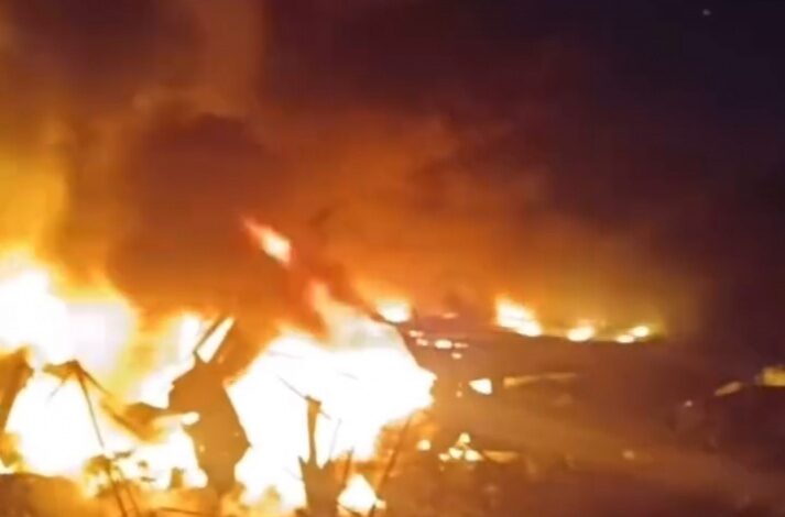 واشتعل حريق كبير في المخيم المستهدف فيما اضطرت نحو الفّي عائلة على النزوح تحت وقع النار.