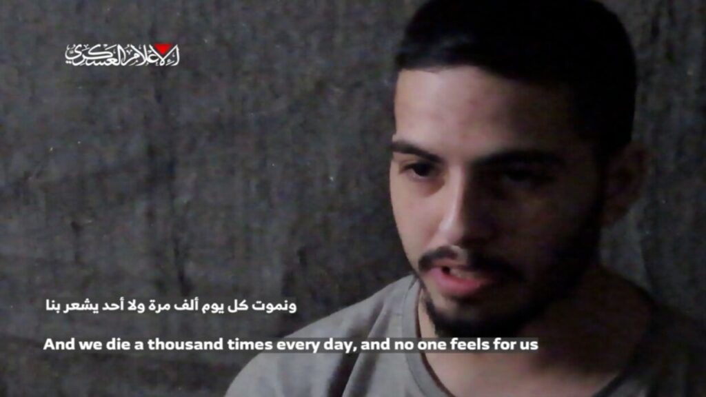 وتضمن الفيديو رسائل ومناشدات على لسان الأسير الإسرائيلي قائلا: “أنا أموت شيئا فشيئا.. كل يوم يموت جزء مني”.
