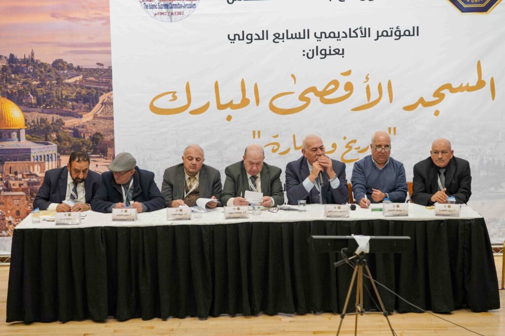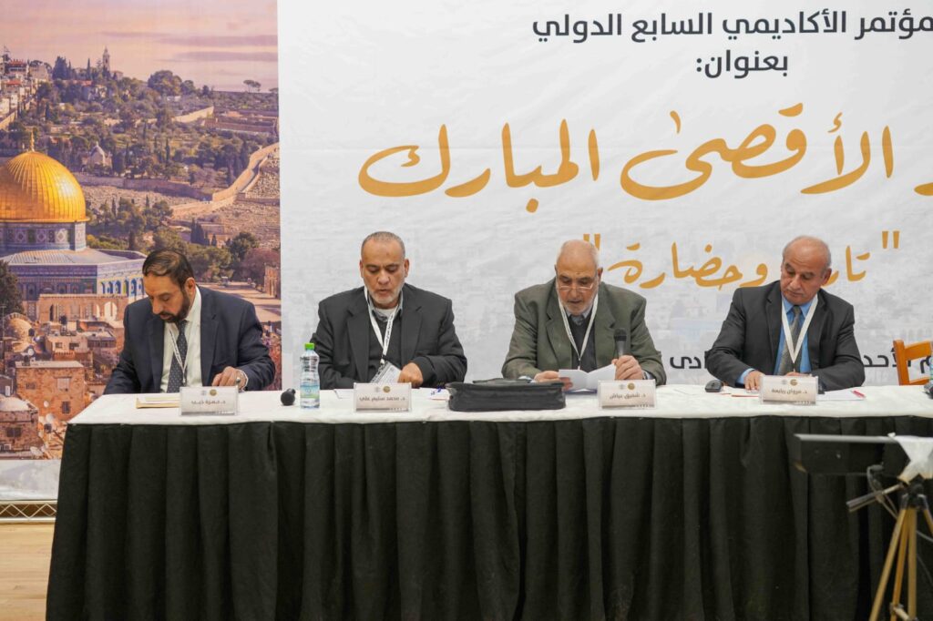 أما الجلسة الرابعة والأخيرة فكانت حول: الاعتداءات على المسجد الأقصى المبارك ترأسها الدكتور وليد سالم، قُدمت في الأوراق الآتية: “الدوافع الفكرية والسيكولوجية للاعتداءات الصهيونية على المسجد الأقصى في ظل حكم اليمين منذ عام 2022″ قدمها أ.د. نعمان عمرو، و”المسجد الأقصى بعد السابع من أكتوبر” قدمها د. ناجح بكيرات، و”حائط البراق وقف إسلامي تحت هيمنة الاحتلال الصهيوني” قدمتها د. سندس محمد علي جاموس ود. زبيدة صبحي سلمان، و”الاعتداءات على المسجد الأقصى” قدمها أ. محمد أبو صالح.