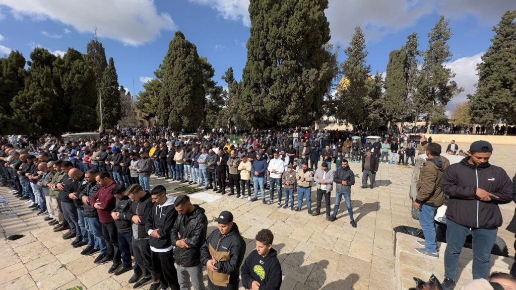 أدى آلاف المواطنين صلاة الجمعة في المسجد الأقصى المبارك، في ظل الإجراءات العسكرية المشددة التي تفرضها سلطات الاحتلال الإسرائيلي على الوصول إلى المسجد.