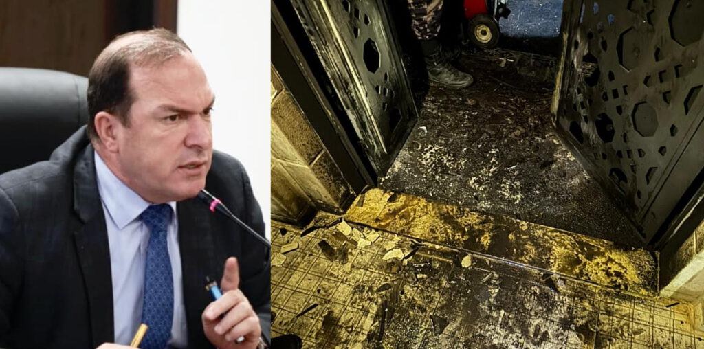 حمل محافظ سلفيت اللواء د.عبدالله كميل الحكومة اليمينية الإسرائيلية المتطرفة المسؤولية الكاملة عن جريمة المستوطنين النكراء، باقتحام بلدة مردا شمال سلفيت فجر اليوم الجمعة وإحراق مسجد “برالوالدين” في البلدة وخط شعارات انتقامية وعنصرية ضد العرب والمسلمين واخرى تهدد اهالي البلدة بالقتل والانتقام.