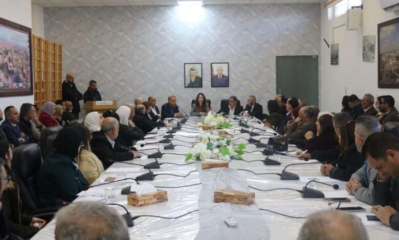 ضمن توجيهات فخامة الرئيس محمود عباس، وتعليمات دولة رئيس الوزراء د. محمد مصطفى، واستنادا لرؤية الحكومة الفلسطينية في التواصل مع مختلف المحافظات لدعمهم وإسنادهم، في ظل الأوضاع الاقتصادية الصعبة التي نمر بها، التقت وزيرة العمل د. إيناس العطاري، اليوم، مع محافظ محافظة بيت لحم محمد طه، وممثلين عن المؤسسات والفعاليات الرسمية والنقابات والاتحادات والغرفة التجارية، وممثلين عن اللجان الشعبية في المخيمات، للإطلاع على أوضاع المحافظة والوقوف على تبعات ممارسات الاحتلال تجاه المواطنين والعمال، وآثارها الاقتصادية والاجتماعية.