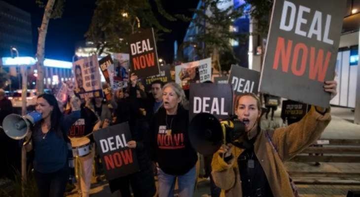 تظاهر عدد من أهالي المحتجزين الاسرائيليين بغزة مساء الاربعاء، وأغلقوا محور أيالون الرئيسي في مدينة تل أبيب للمطالبة بإعادتهم.
