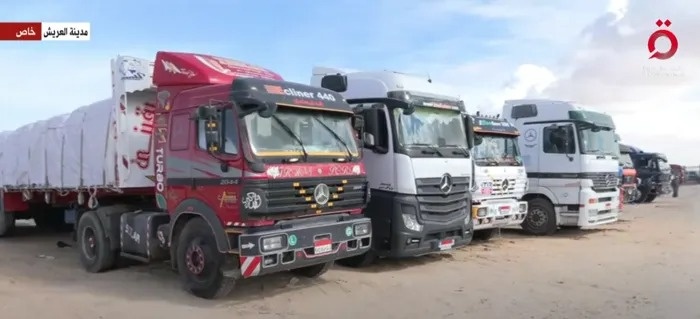 وأشارت إلى أن مئات الشاحنات تصطف في عدة مواقع بشمال سيناء، بعضها ينتظر منذ أشهر عديدة، وتحمل أنواعا مختلفة من المساعدات المتمثلة في مواد غذائية وملابس وتجهيزات طبية وخيام وأدوات نظافة وحمامات متنقلة ومواد إغاثية أخرى.