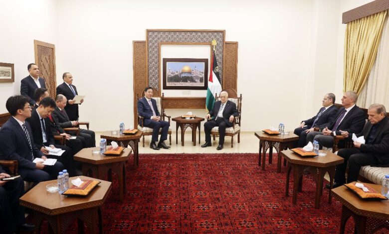 استقبل رئيس دولة فلسطين محمود عباس، اليوم السبت، بمقر الرئاسة في مدينة رام الله، المبعوث الصيني للشرق الأوسط تشاي جيون، والوفد المرافق له.