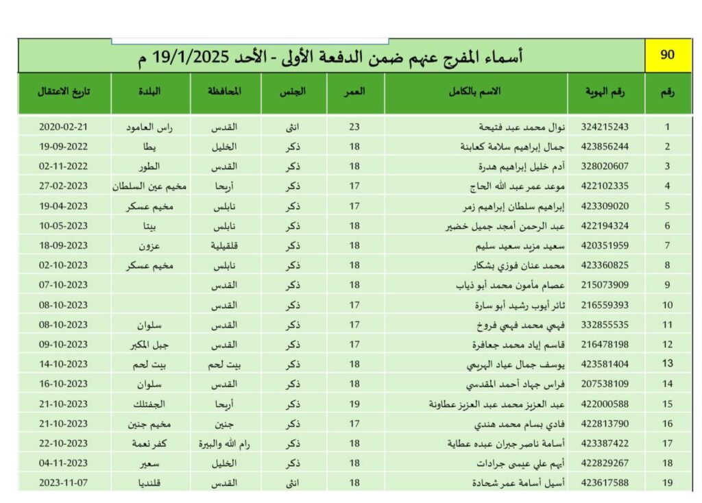 الرئيسية/الأخبار/فلسطينيات/الكشف عن القائمة الرسمية للأسرى والأسيرات المفرج عنهم اليوم ضمن الدفعة الأولى لصفقة التبادل الكشف عن القائمة الرسمية للأسرى والأسيرات المفرج عنهم اليوم ضمن الدفعة الأولى لصفقة التبادل 19 يناير، 2025آخر تحديث: 19 يناير، 2025 أقل من دقيقة الوسومخبر مميز الرابط المختصر: 19 يناير، 2025آخر تحديث: 19 يناير، 2025 أقل من دقيقة فيسبوك X لينكدإن سكايب ماسنجر ماسنجر واتساب تيلقرام مشاركة عبر البريد طباعة