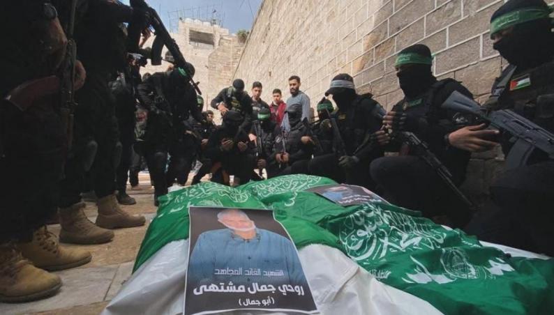 وشيع مواطنون ظهر اليوم الجمعة في مدينة غزة عضو المكتب السياسي لحماس روحي مشتهى، وقائد جهاز الأمن العام التابع للحركة سامي عودة، بمشاركة عناصر الجهاز العسكري “كتائب القسام”.