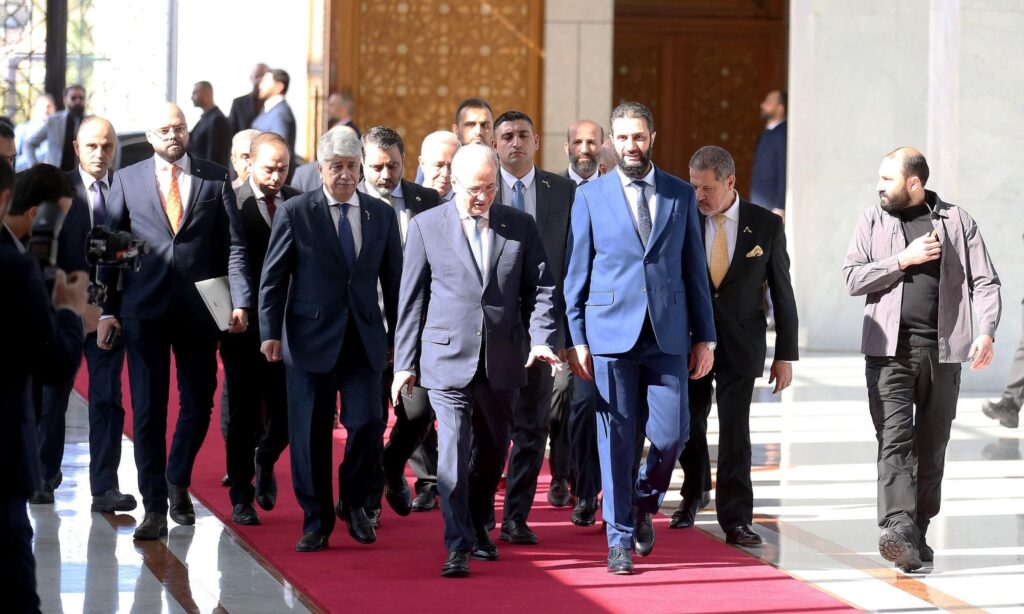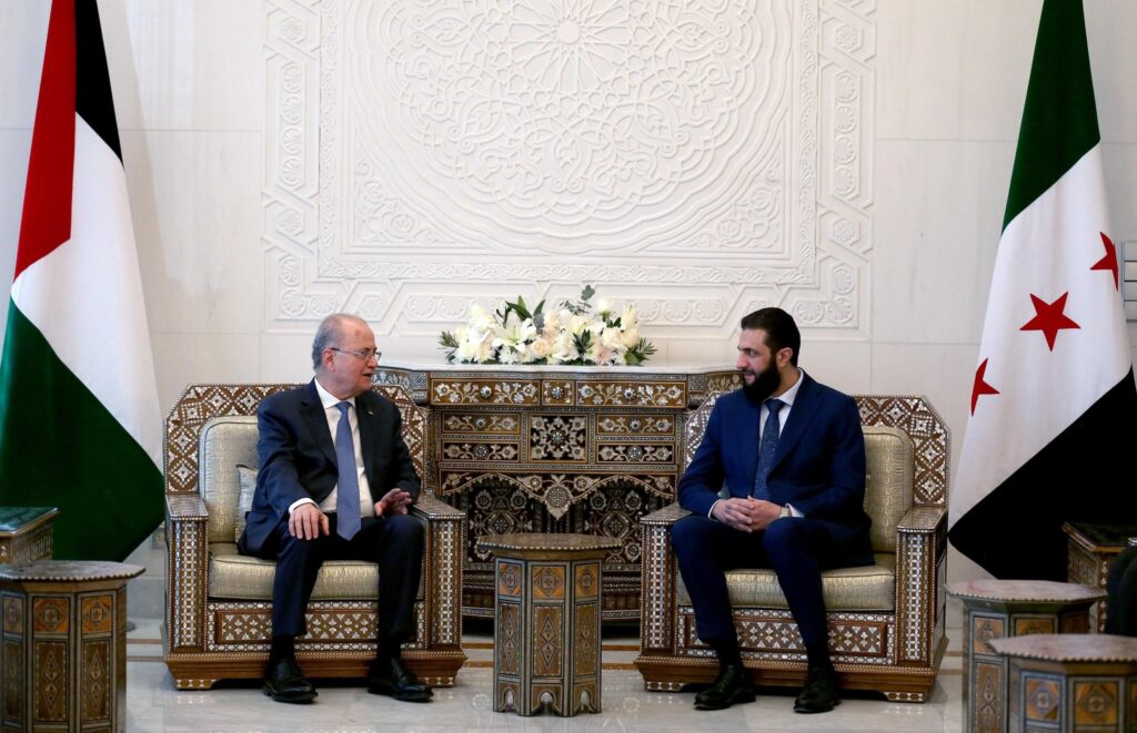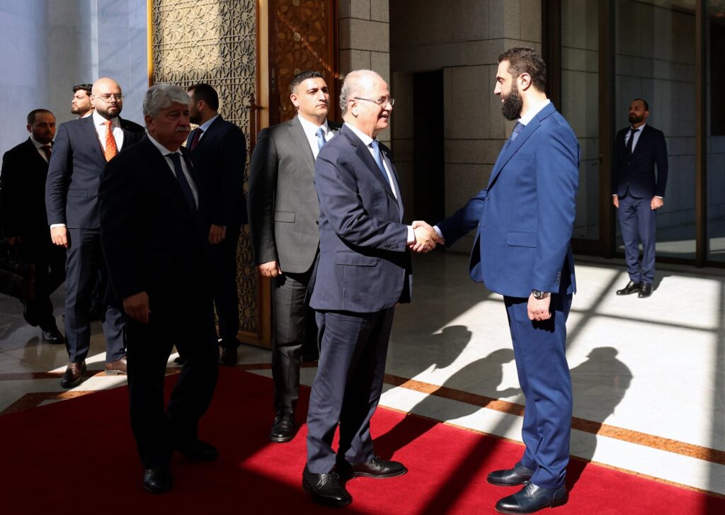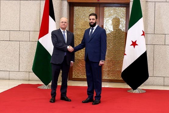التقى رئيس الوزراء، وزير الخارجية د. محمد مصطفى، عضو اللجنة التنفيذية لمنظمة التحرير الفلسطينية، قائد الإدارة السورية الجديدة أحمد الشرع، وذلك اليوم الثلاثاء في قصر الشعب في العاصمة السورية دمشق على رأس وفد فلسطيني رسمي.